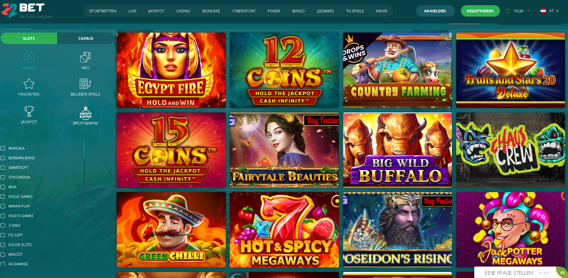 22Bet zeichnet sich durch eine riesige Auswahl an Providern aus